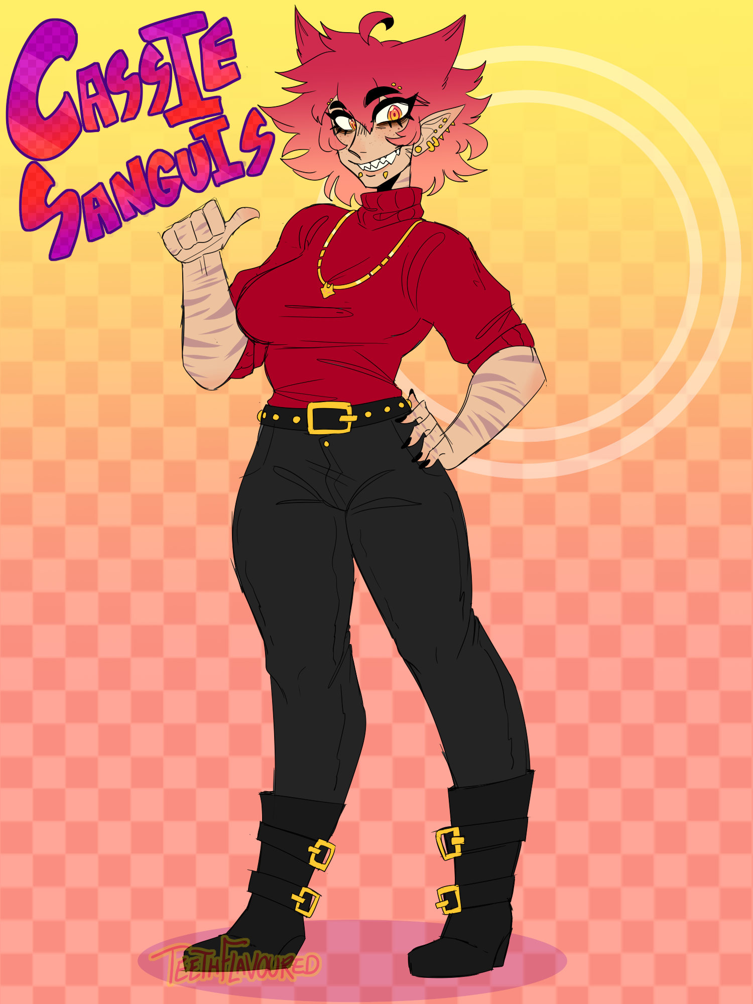 Despite her rough childhood filled with neglect and abuse from her parents, Cassie is a very upbeat, optimistic girl. She always tries to see the best in every situation and always assumes everyone has her best interest at heart. This usually results in her getting hurt in the long run, but hasn’t seemed to learn why. Around strangers, she is akward and socially inept, but with her friends she is more than happy to indulge and share her interests in fitness, music, digital art, and animal taxidermy.While at ERA, Cassie played drums for the Offchords during the Rock-a-Thon, quickly discovering and helping expose her bandmate and once-friend Karen’s true intentions. After sparking a deeply intimate romantic relationship with fellow drummer Kai from Collateral Damage, the two started distancing from other relationships, burning any bridges that couldn’t tolerate the flames of their love. Then, shortly following the events of Skyber’s Wildcard Tournament, the couple cut all ties and were never seen again, presumed to have somehow escaped the facility togather.